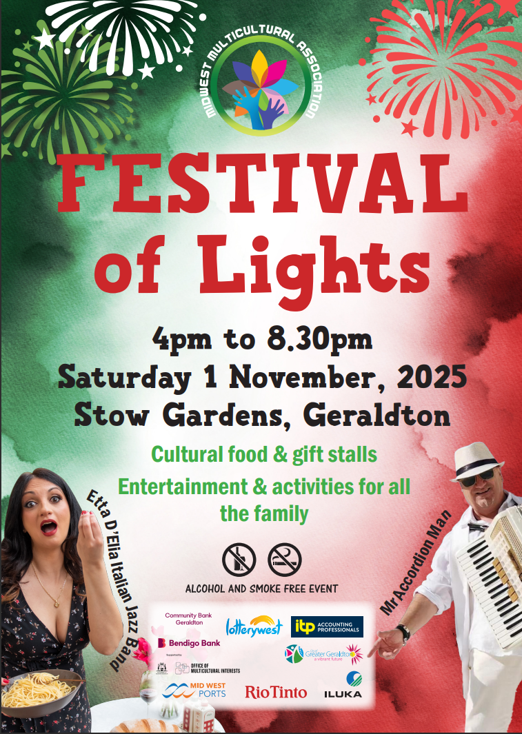 Event details:When: Saturday 1 November 2025Time: 4:00 pm to 8:30 pmWhere: Stow Gardens, 31 Foreshore Drive, GeraldtonCost: Free